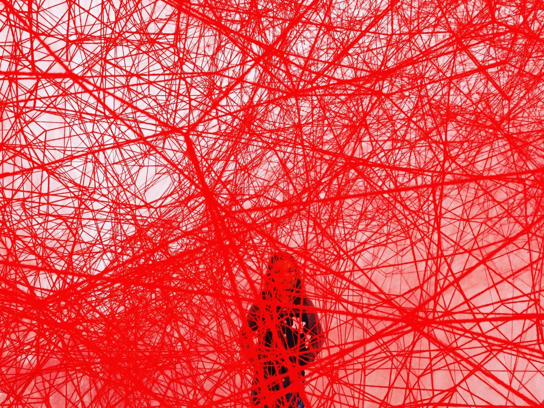 They each find their keys that match the cards they had received two days earlier, following the string into the room where they encounter a dense web of red thread filling the room. The room is small and they have to climb over each other as they follow their threads, creating an atmosphere of playfulness and collaboration. As they climb over each other their is audio playing, the voice from the bedtime story asking questions about fate. Eventually, their thread connects them to another person, meeting in the middle. The audio inquires: “Why do you think you were fated to meet?”